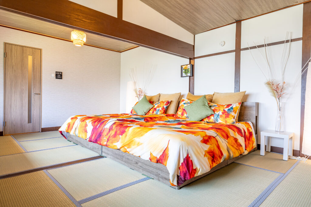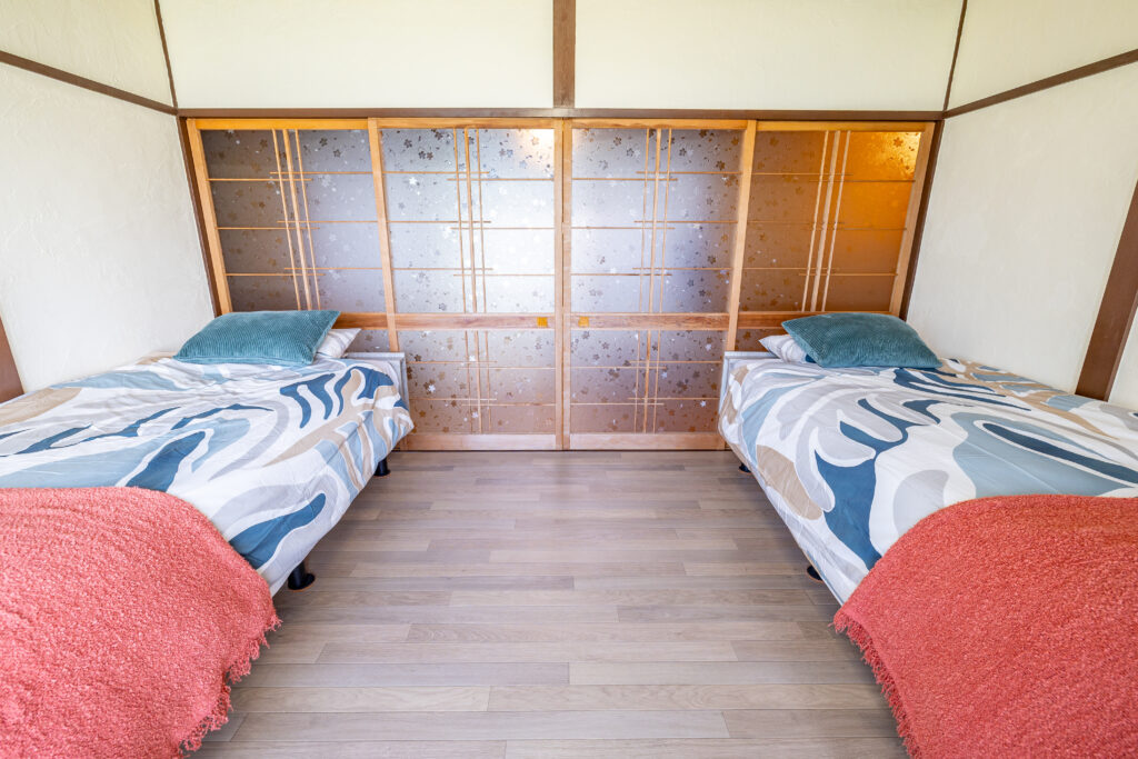伝統的な畳の和室で、最大4名様まで布団を敷いてご利用いただけます。