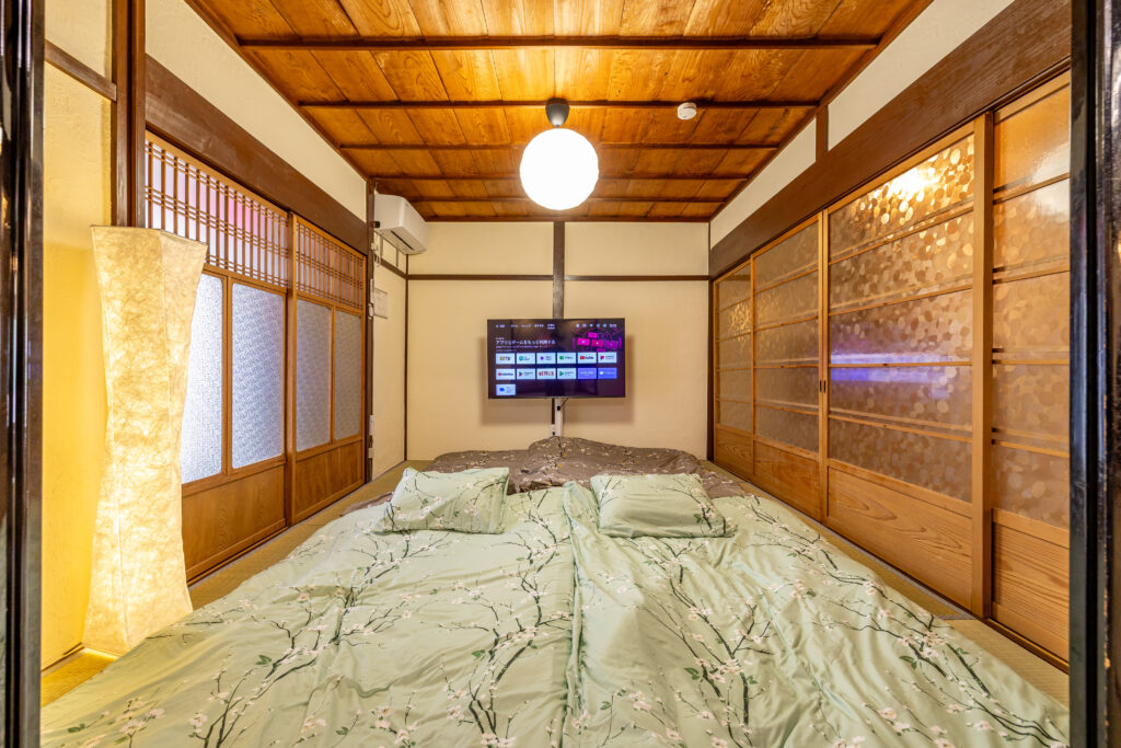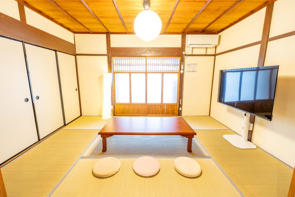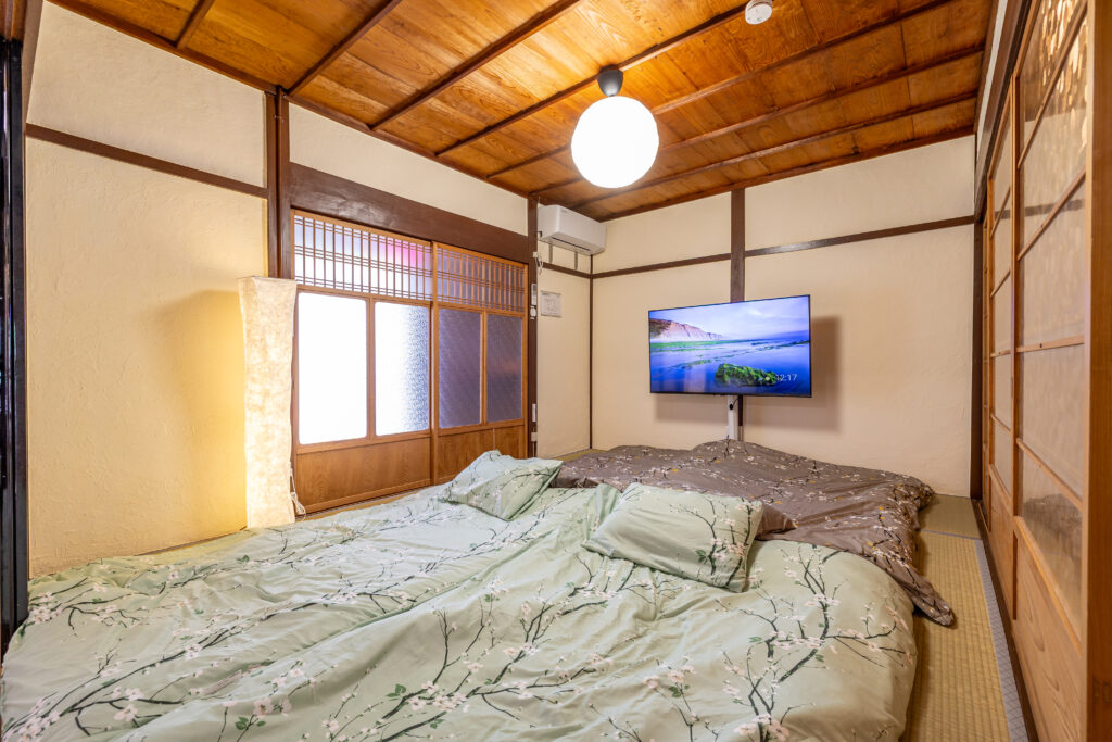 伝統的な畳の和室で、最大4名様まで布団を敷いてご利用いただけます。