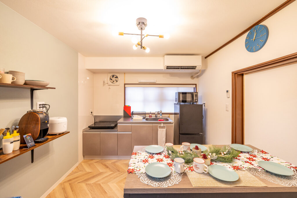 長期滞在やファミリー滞在に対応した、奈良市の民泊施設ならではの充実設備です。