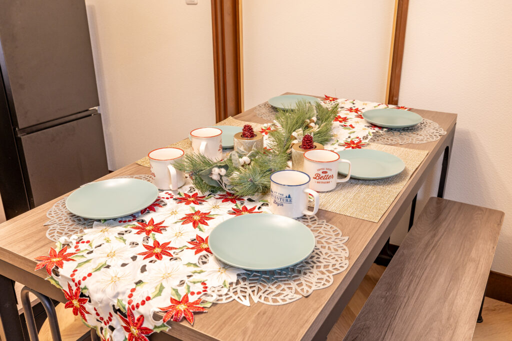 自炊した料理を楽しんだり、テイクアウトの奈良グルメを並べたり、自由な過ごし方が可能です。