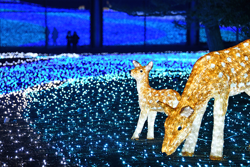 2月中旬に開催される「なら瑠璃絵」は、奈良公園一帯が瑠璃色の光に包まれる冬の風物詩です。